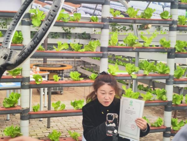 這家2012年成立的合作社,如今已是省級示範社。走進基地,5480平方米的智能化連棟玻璃溫室裏綠意盎然,6540平方米的PO薄膜大棚整齊排列,70座雙桿四膜鋼架大棚更是藏著「增收秘訣」——這項獲國家專利的種植技術,能讓早春晚秋多收兩茬葉菜,全年最多種8茬,畝均增收1萬元,500多畝推廣面積讓不少農戶嘗到甜頭。