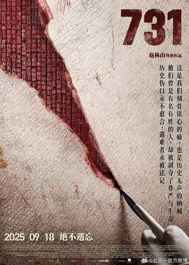 9月18日,電影《731》在全球上映,引發了觀眾的強烈共鳴。截至目前,該片總票房(含預售)達7.36億元,更是成為中國影史單片單日總場次榜冠軍和首映日總場次榜冠軍。影片將日本731部隊在中國犯下的反人類罪行、將那段被試圖掩蓋的黑暗歷史,再次置於國際社會的視野中央。