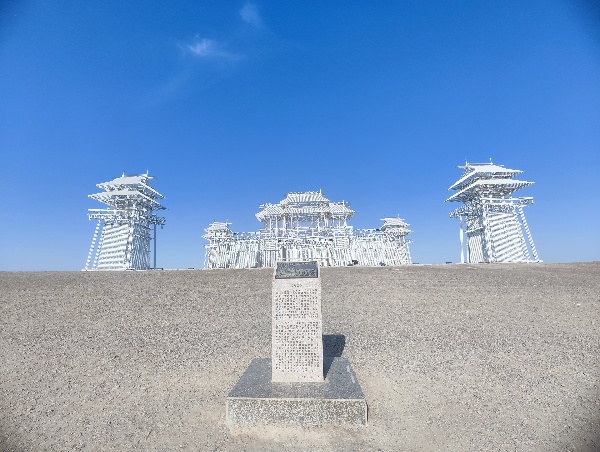 風過之處,《風語者》便奏響自然的旋律。128組鋼管構成外方內圓的空間,呼應「天圓地方」的智慧,風拂過時碰撞出的清脆聲響,在曠野中久久回蕩。這尊融合視覺與聽覺的雕塑,讓風成為歷史的訴說者,娓娓道來絲路過往。